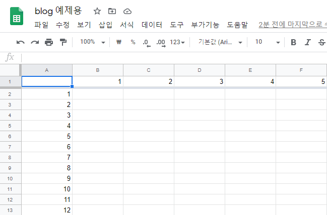 구글 스프레드시트는 행과 열을 각각 지정해야 하고