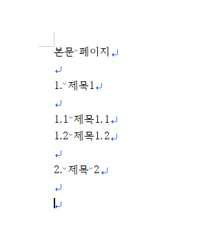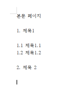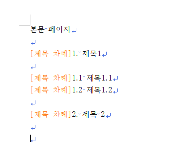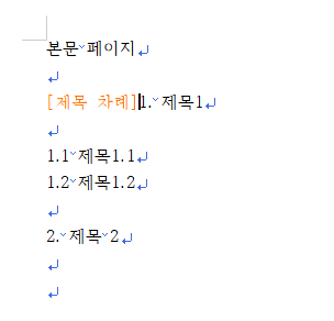 4. 목차를 생성하고자 하는 부분에 커서를 놓고 반복한다.