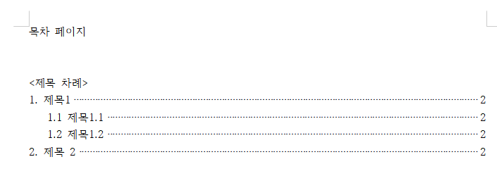 3. [제목 차례]라고 생성되면 성공, 그 줄을 목차에 넣겠다는 의미이다.