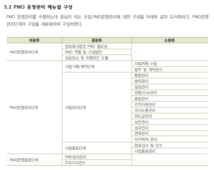 두번째 PMO 프로젝트에서는 시스템 구축 프로젝트임에도 불구하고 산출물의 품질관리나 사업관리에 대한 검토의견서 작성보다 발주기관의 행정처리 업무, 행사 지원업무를 더 많이 수행하고 있다.