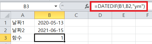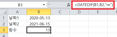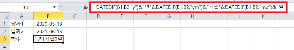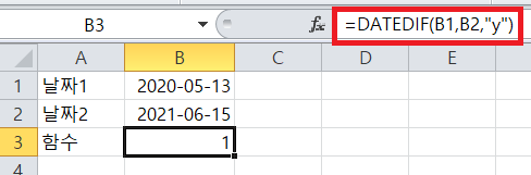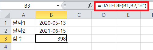 =DATEDIF(날짜1, 날짜2, "형식")