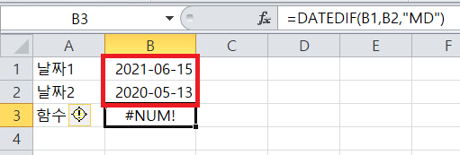 날짜1이 날짜2보다 크면 오류