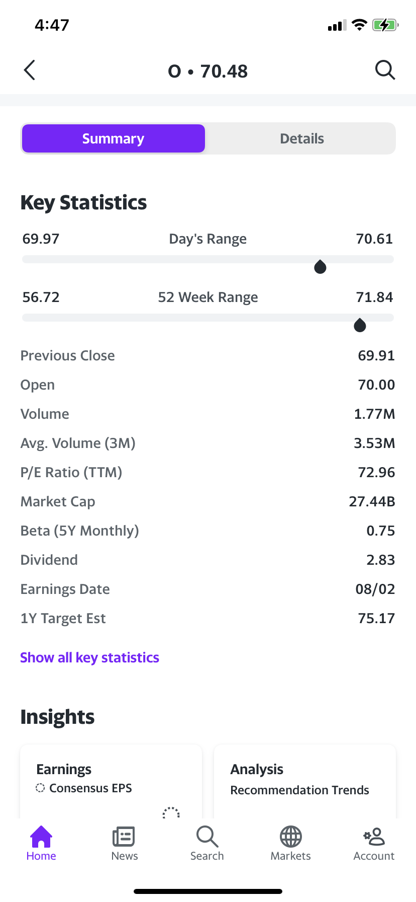 Yahoo Finance 에서 종목 검색을 하면 차트 아래 기본적인 통계(지표)가 있다.
